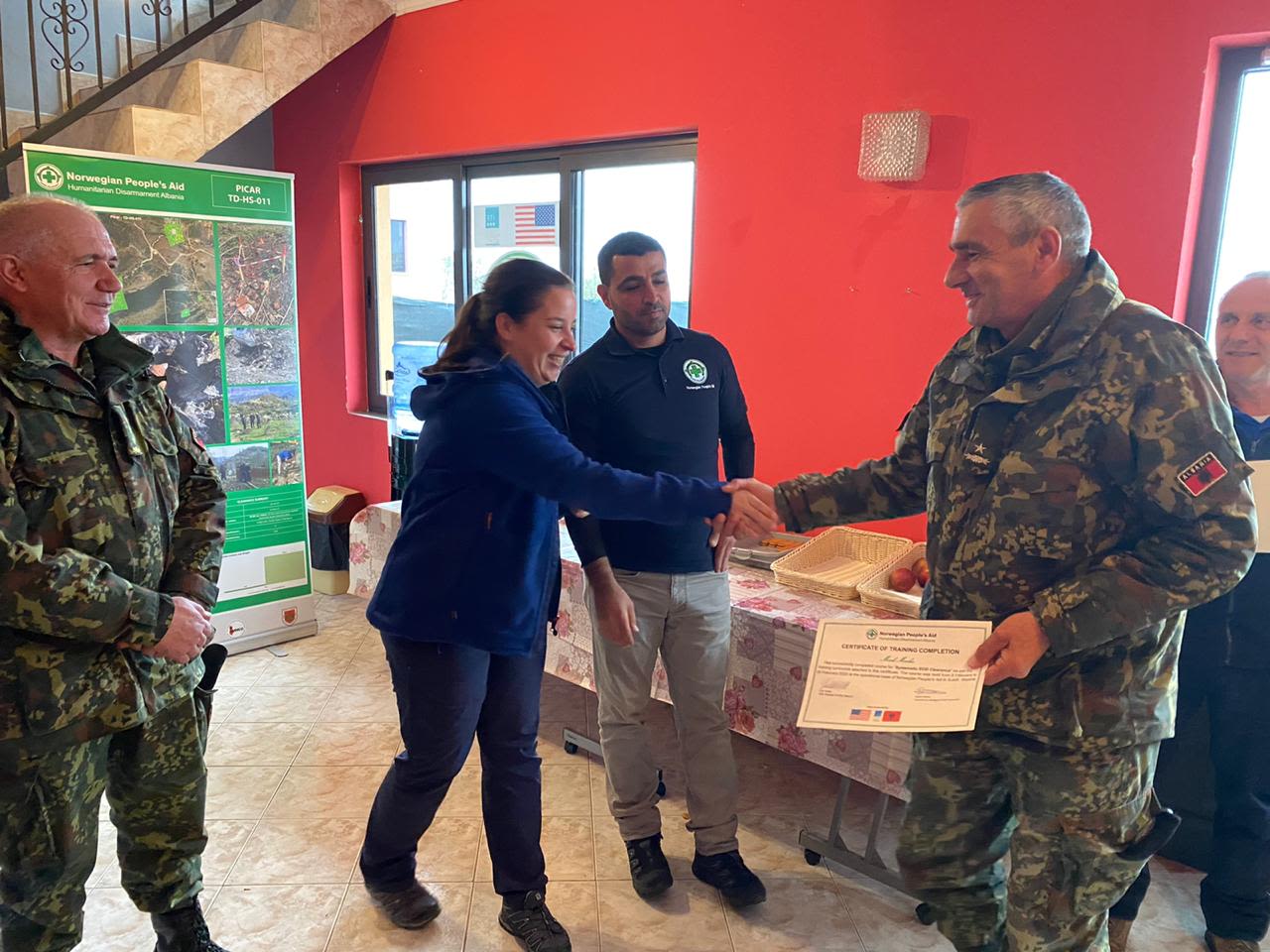 NPA's Country Director Eva Veble is given thanks after job well executed in Albania.